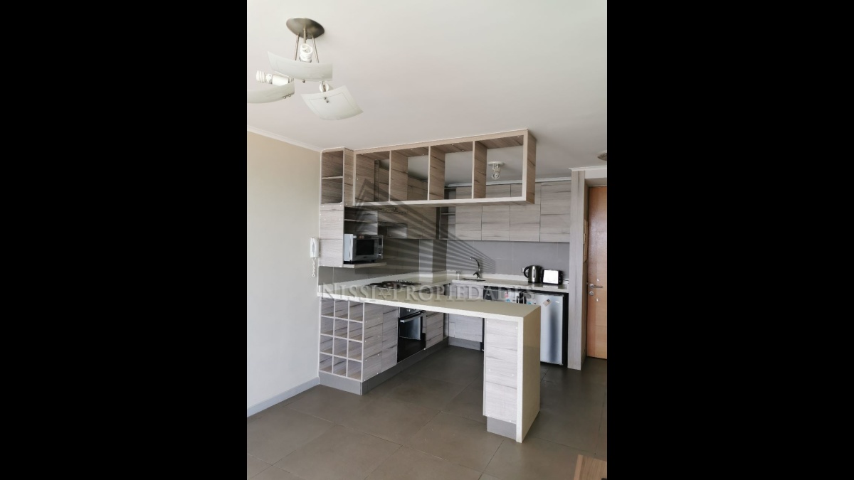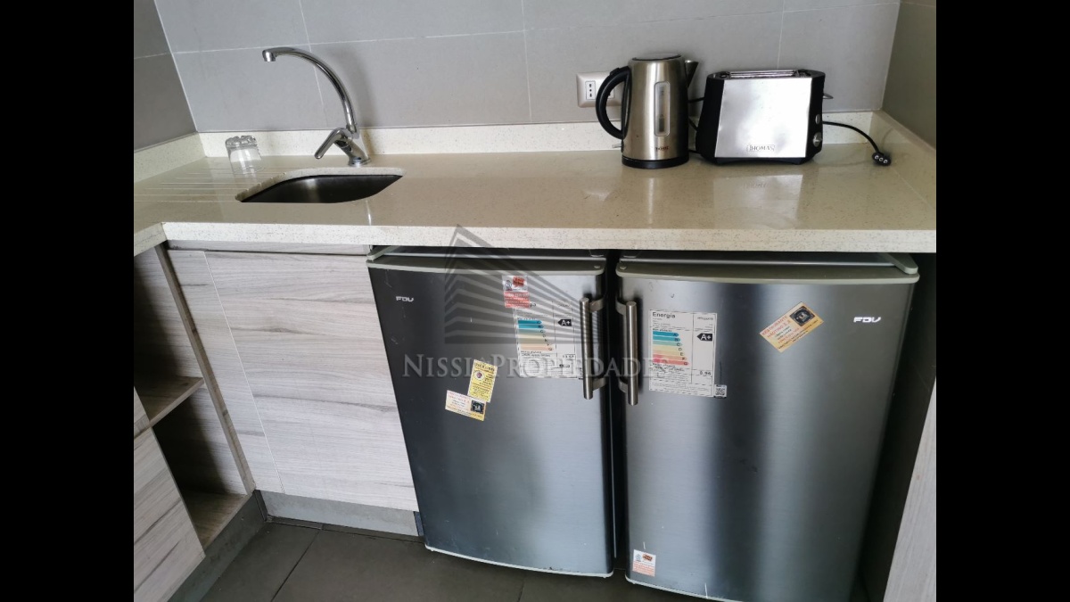 Consta de 2 dormitorios, 2 baños, cocina amoblada, living, balcón, estacionamiento y bodega. La cocina cuenta con horno, encimera eléctrica, refrigerador y congelador.